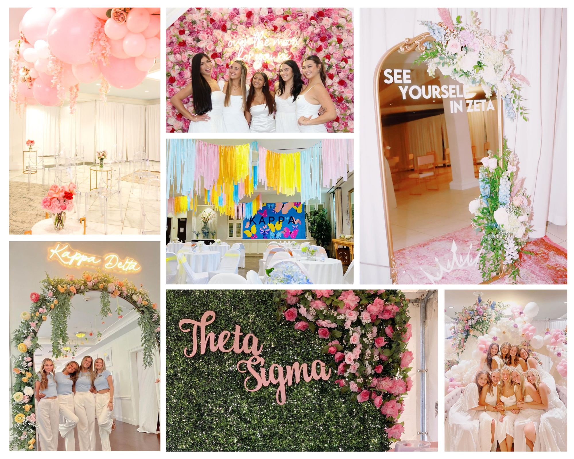 Whether it's sisterhood round, house tours, or philanthropy day, this is the perfect place to start to elevate your recruitment party.