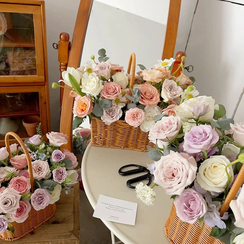 ✔ Versatile Use – Use it as a flower basket for centerpieces, a picnic basket for outdoor events, or a storage solution for organizing accessories, cosmetics, or snacks.