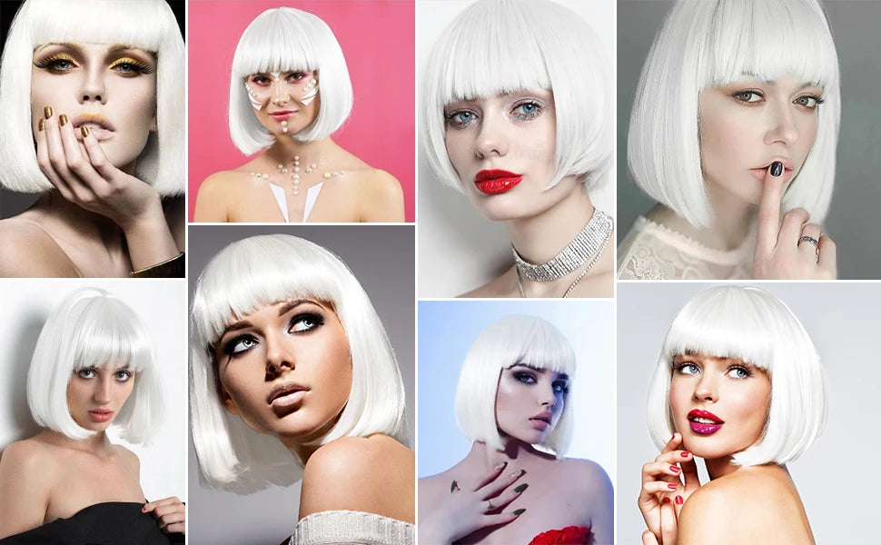 β Built-In Bangs & Blunt Bob Cut β A bold, trendy look that frames the face and photographs beautifully.